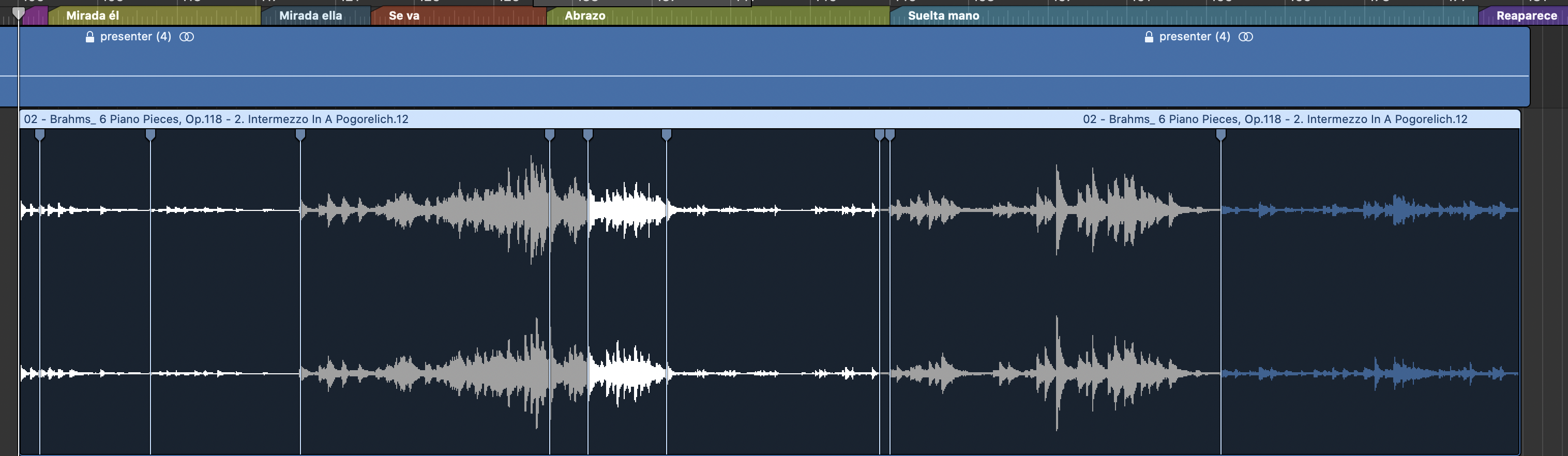 Para este video hemos desplazado la música hacia delante y hemos cambiado los marcadores Flex.