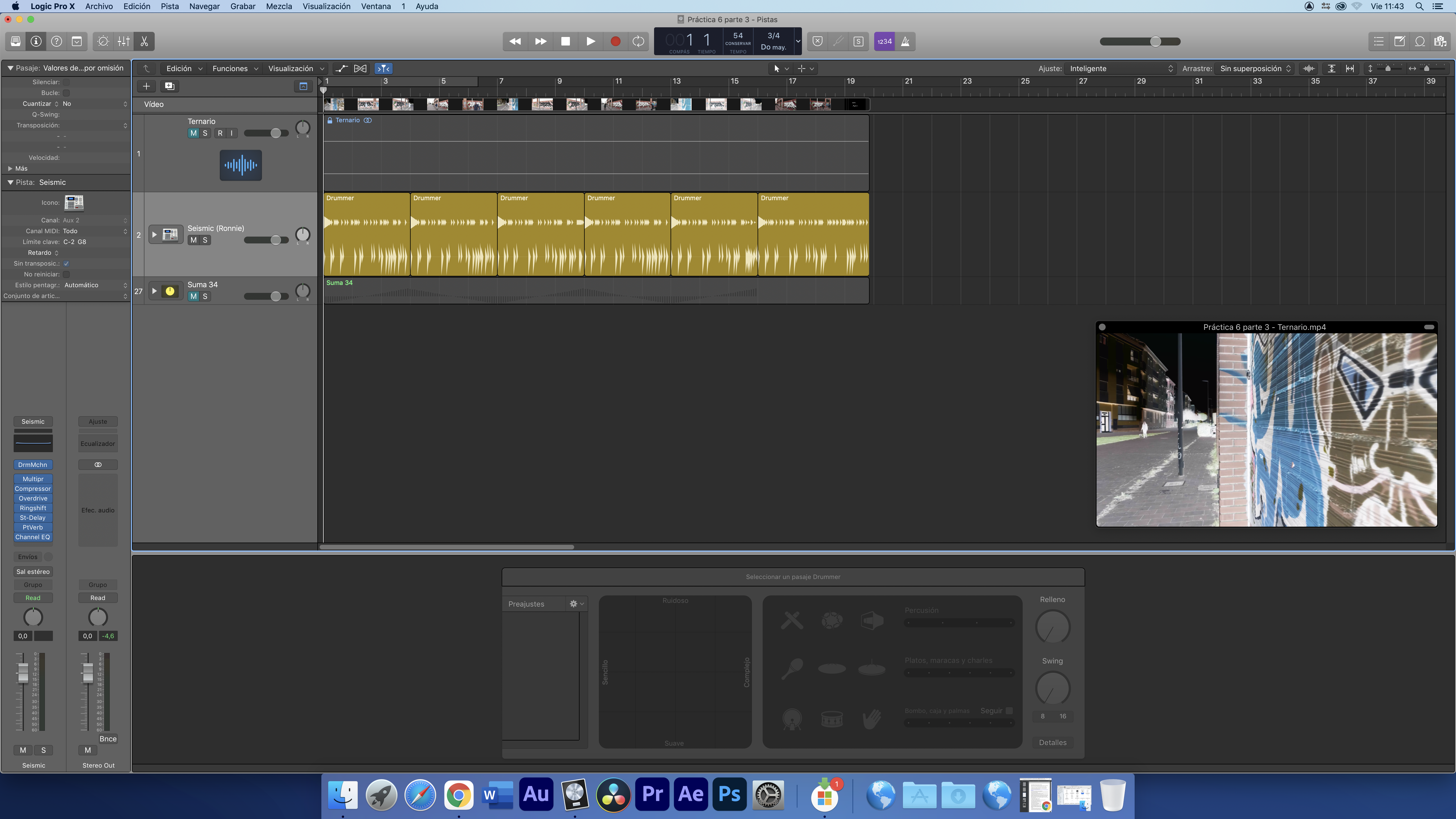 El video utilizado para este ejercicio tiene seis secuencias de diez segundos cada una. Por lo que la música que vamos a utilizar respetará estas condiciones. Para ello hemos creado una secuencia Drummer con un compás de 3/4.