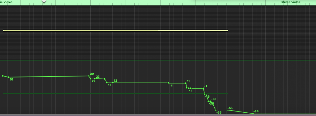 Escala descendente en Do Mayor para acompañar al personaje bajando las escaleras, consiguiendo un tono algo cómico a través del uso de una sonoridad percursiva del Pizzicato del violonchelo. Con la automatización del MIDI he creado un sútil crescendo a medida que el personaje se iba acercando al objetivo.